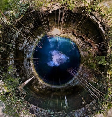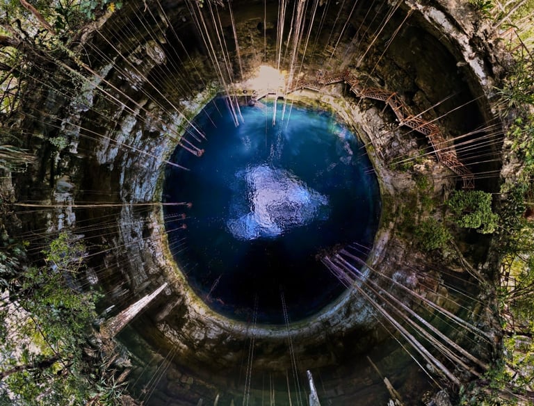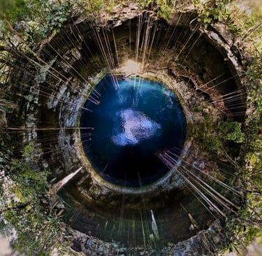 Reserva privada de la selva maya. Una familia cuida protege un cenote maduro de belleza indescriptible. Plataforma de 22m, Piscina, Restaurante, Bar y Temazcal.